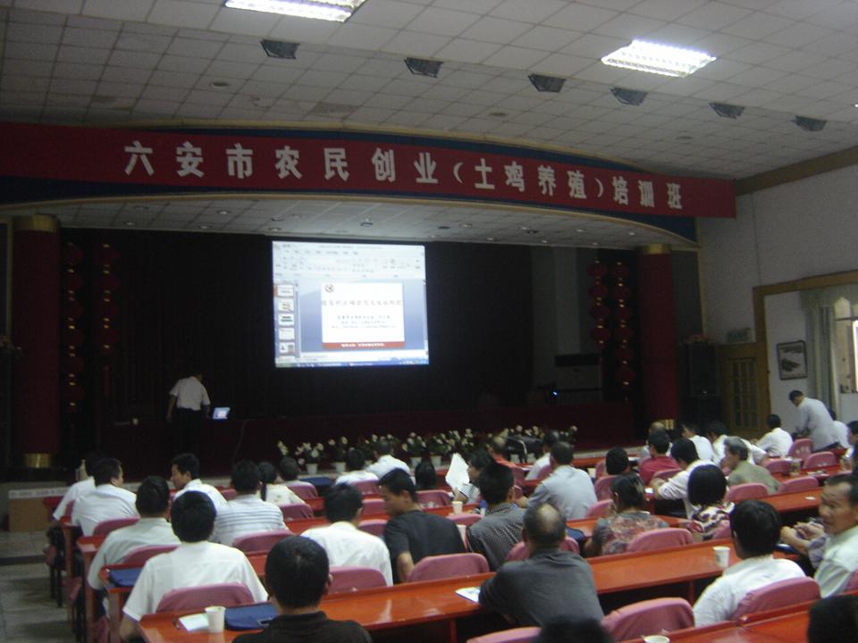 2011年6月24日-6月26日,由六安市畜牧兽医局主办的六安市2011年农民创业(土鸡养殖专业)培训班在六安市东方宾馆会议中心成功举办。此次培训班旨在提高广大土鸡养殖专业户的土鸡饲养管理水平,加快我市土鸡产业的健康发展,促进我市农村经济发展和农民增收。本次培训内容涉及企业管理与市场营销、土鸡饲养管理及疫病防治等。来自六安各县区的200多名土鸡养殖户参与了此次培训。六安市皋尧土鸡养殖专业合作社对本次培训给予了大力支持,在组织宣传、会议安排、技术咨询等方面作了大量工作,受到了广大学员的欢迎和相关领导的肯定。